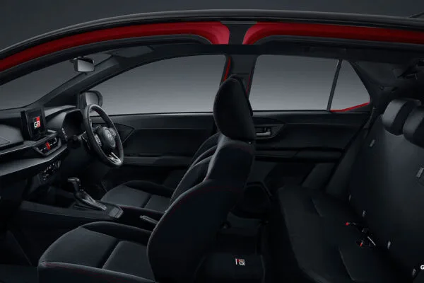 Berpindah ke interior Toyota New Agya, ada beberapa upgrade yang diberikan. Terdapat desain dashboard terbaru dengan Combination Meter with Red Accent yang membuat Anda bisa lebih mudah melihat penunjuk indikator mobil. Khusus untuk tipe TRD terdapat New Touch Screen Head Unit dan New Engine Start/Stop Button yang menambah jiwa sporty di dalam interior Toyota New Agya.